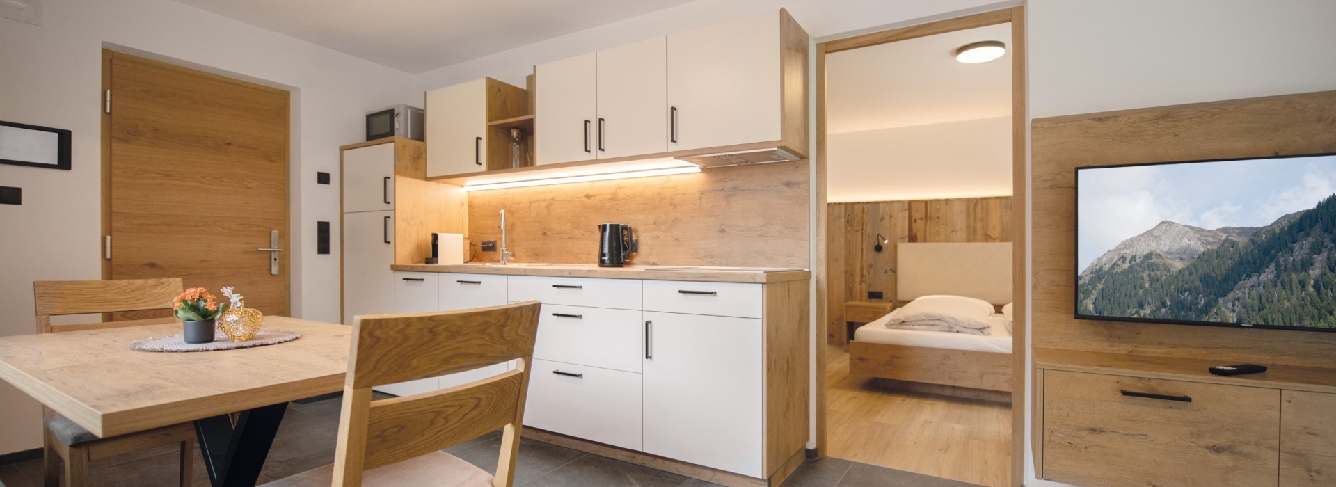 I nostri nuove appartamenti vacanza sono arredate con cura non sono solo accoglienti ma anche smart. Ciascuna di esse è dotata di un tablet che serve sia a prenotare servizi aggiuntivi che a farsi ispirare per la pianificazione della vacanza. Puoi usarlo anche per informarti alla perfezione di tutte le possibili mete escursionistiche delle vicinanze.